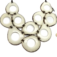 Това леко колие е ръчно изработено в Еквадор от слама токила, образувайки деликатни флорални мотиви по дължина на нишка от ~45 см. Естествените му влакна и фината му текстура му придават занаятчийски чар, идеален за ежедневни или етнически тоалети.